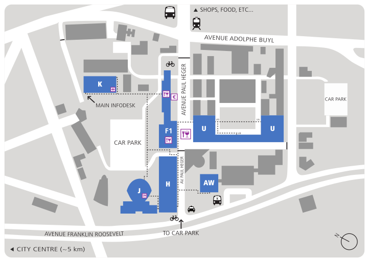 To get to the ULB Campus many use public transport like the bus or the tram. In Brussels also bike-sharing services are available and even e-scooter sharing systems like lime, too.